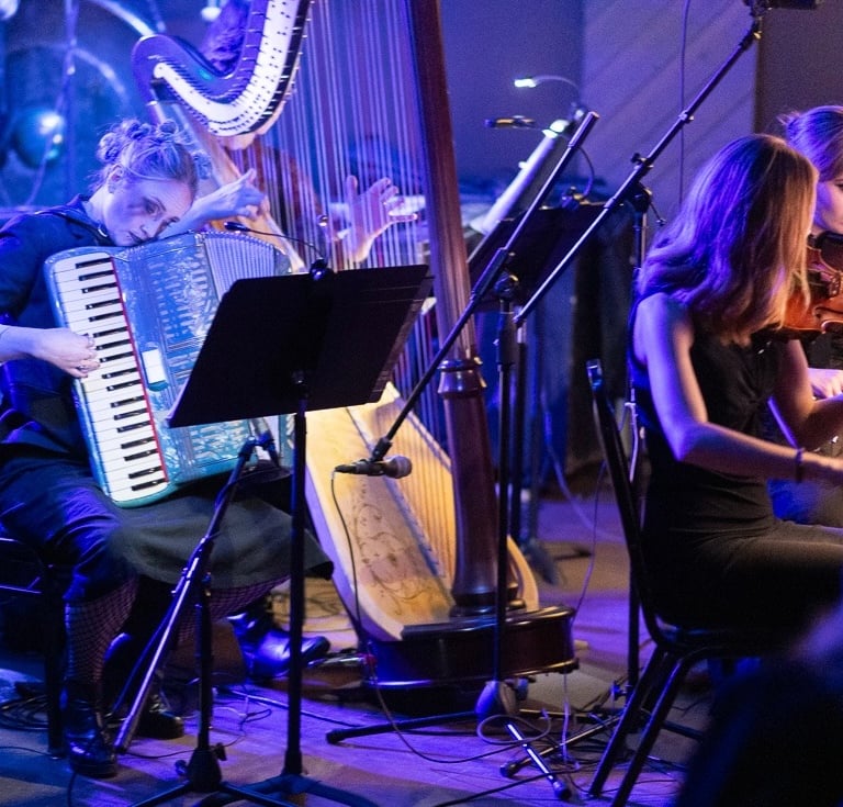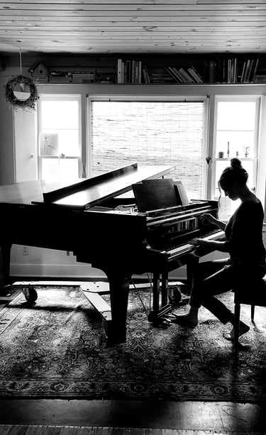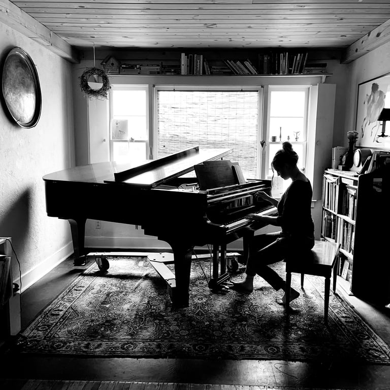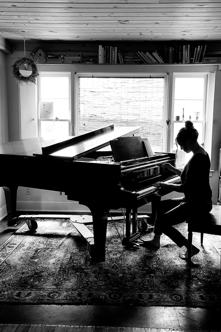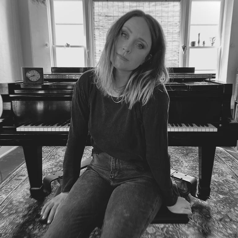 Her most recent project, Settling into Blue, was just released May 2025. This record explores the collision of the cycle of abuse with the six stages of grief - denial, anger, bargaining, depression, acceptance, and hope. Her background in classical piano is highlighted with moody compositions like "bargaining", and "anger", whereas "break" and "rewrite" introduce a pop element, and you'll hear sprinkles of an Eastern European influence throughout. You can call it singer songwriter, you can call it chamber pop, but whatever you call it, you know it is 50% experiment, 50% experience, and 100% heart.